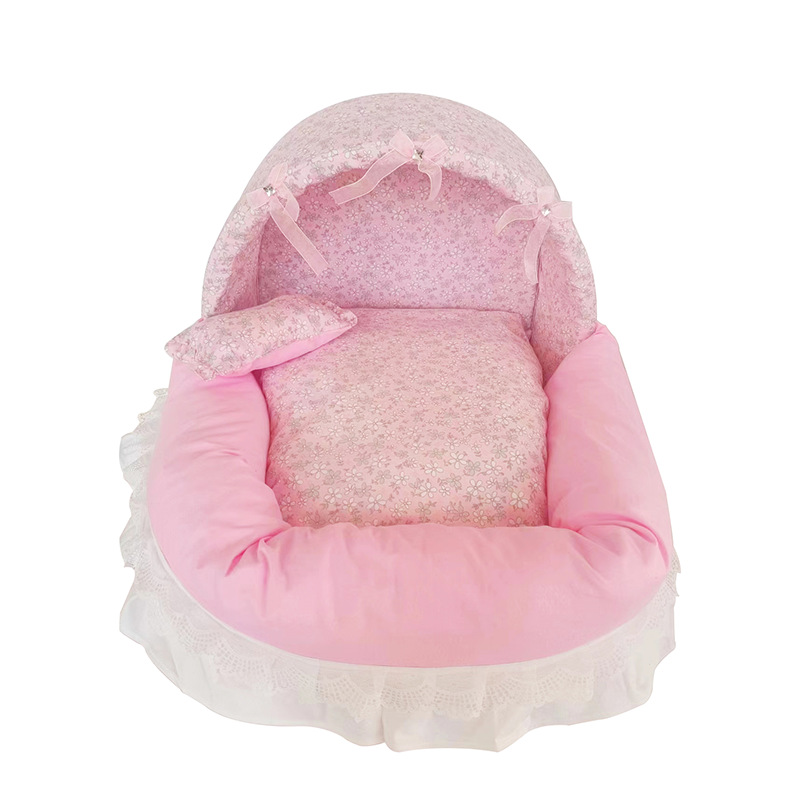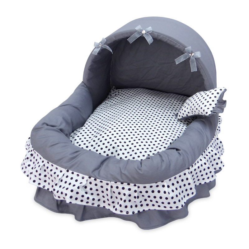 The double-layered skirt design elevates the charm of the pet bed.